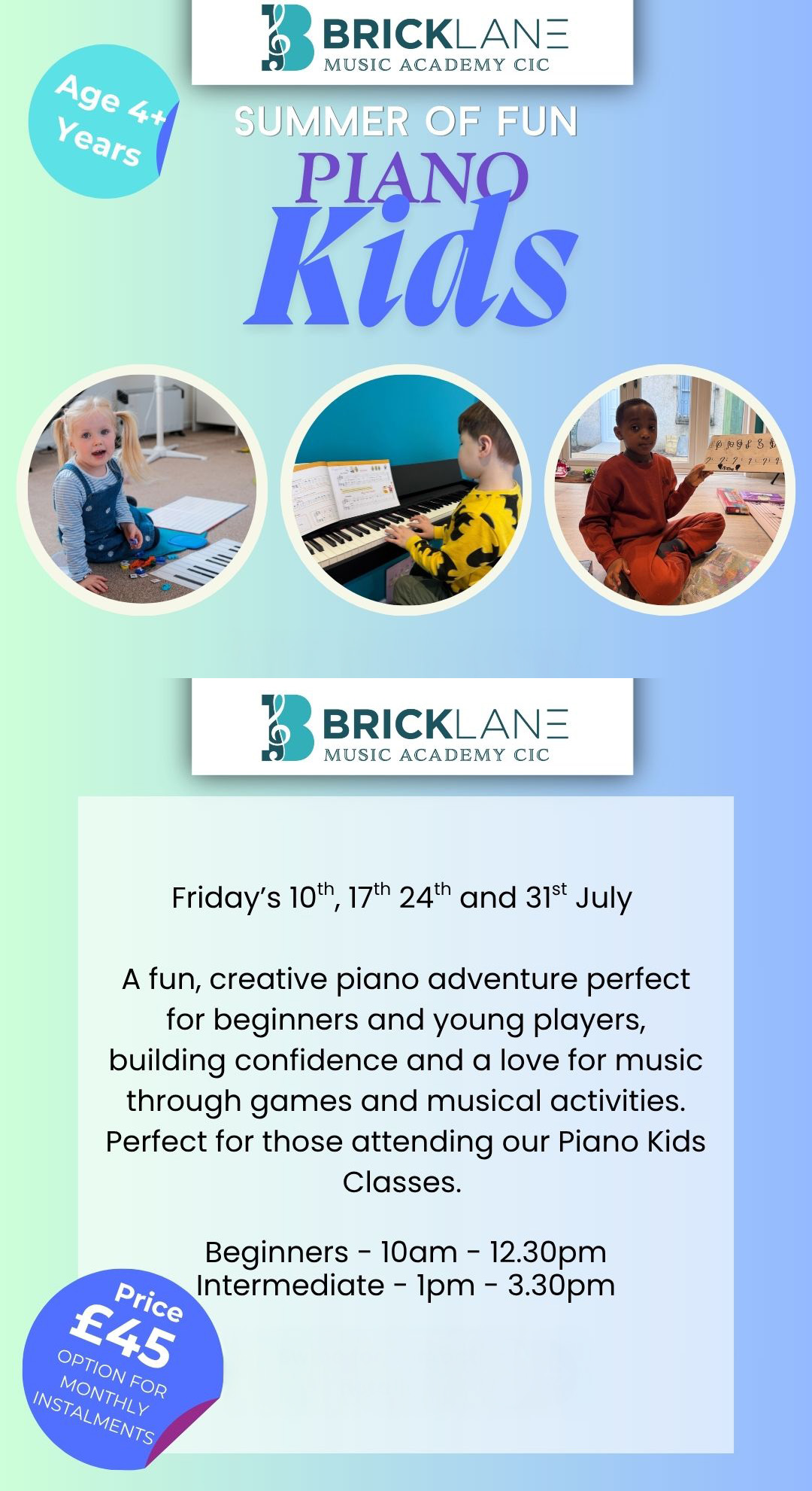 Saturday 10am : Piano Kids (5-9 Yrs)